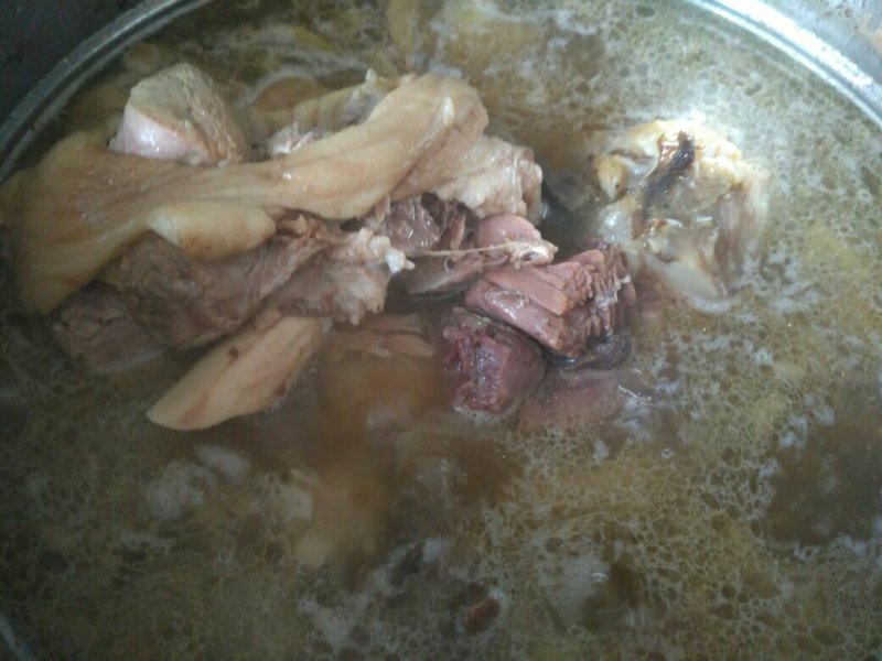 Рулька свиная 1 шт+ лытка говяжья 1шт+рулька говяжья 1 колечко. Воды чтоб очень хорошо скрыло всё. Соль. Варить 5-6 часов на медленном огне. За 1 час до окончания варки положить 1 большую луковицу целую, морковь, лавровый лист, перец горошком.