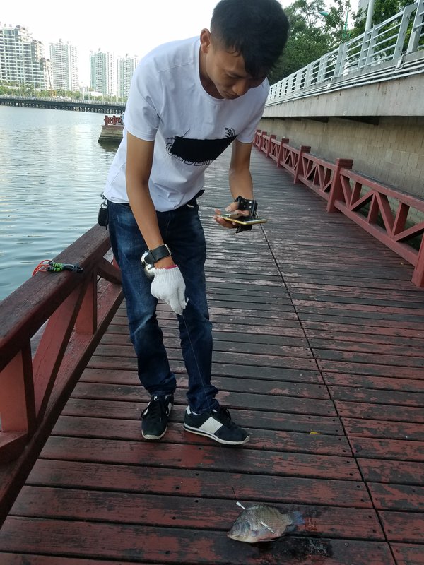 Дерзкий парень ловил рыбу в городской реке резко выстреливая из самодельного ручного арбалета
