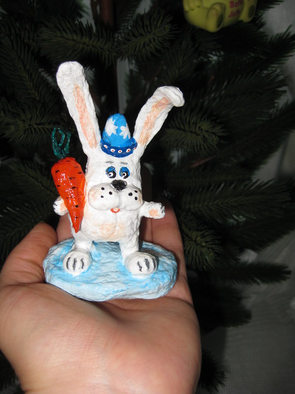 Мой маленький "шедевр", новогодний ватный заяц))