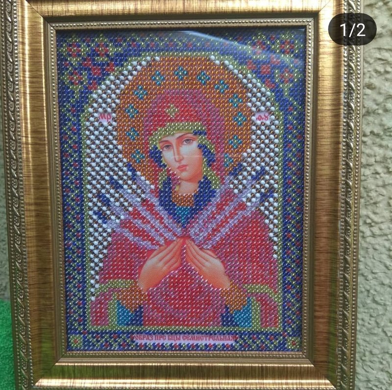 На фоне все мастериц, моя работа конечно мелочь. Просто покажу свою красоту! Икона, вышита бисером.