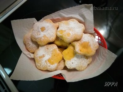 У меня получилось 2 листа. Печенье с первого листа я просто смазала яйцом, а после выпечки посыпала сахарной пудрой. Печенье на втором листе смазала яйцом и посыпала сахаром. И тот, и другой вариант оказались вполне вкусными. Выбирайте сами, какой вам предпочтительнее.