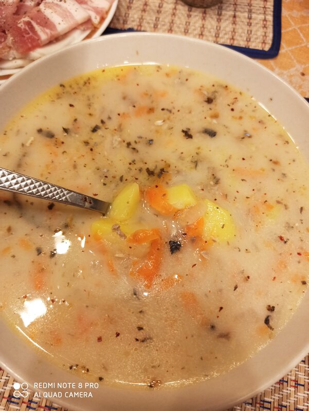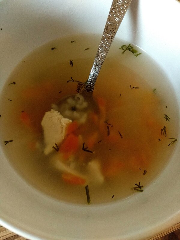 Бульон куриный с грудкой и рисом, без картофеля. Мне желудку прям хорошо