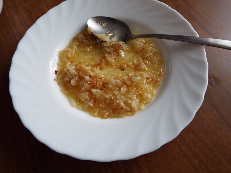 Порезать мелко одну луковицу ( а лучше две), обжарить на смеси растительного и сливочного масла до красивого золотистого цвета и мягкости.