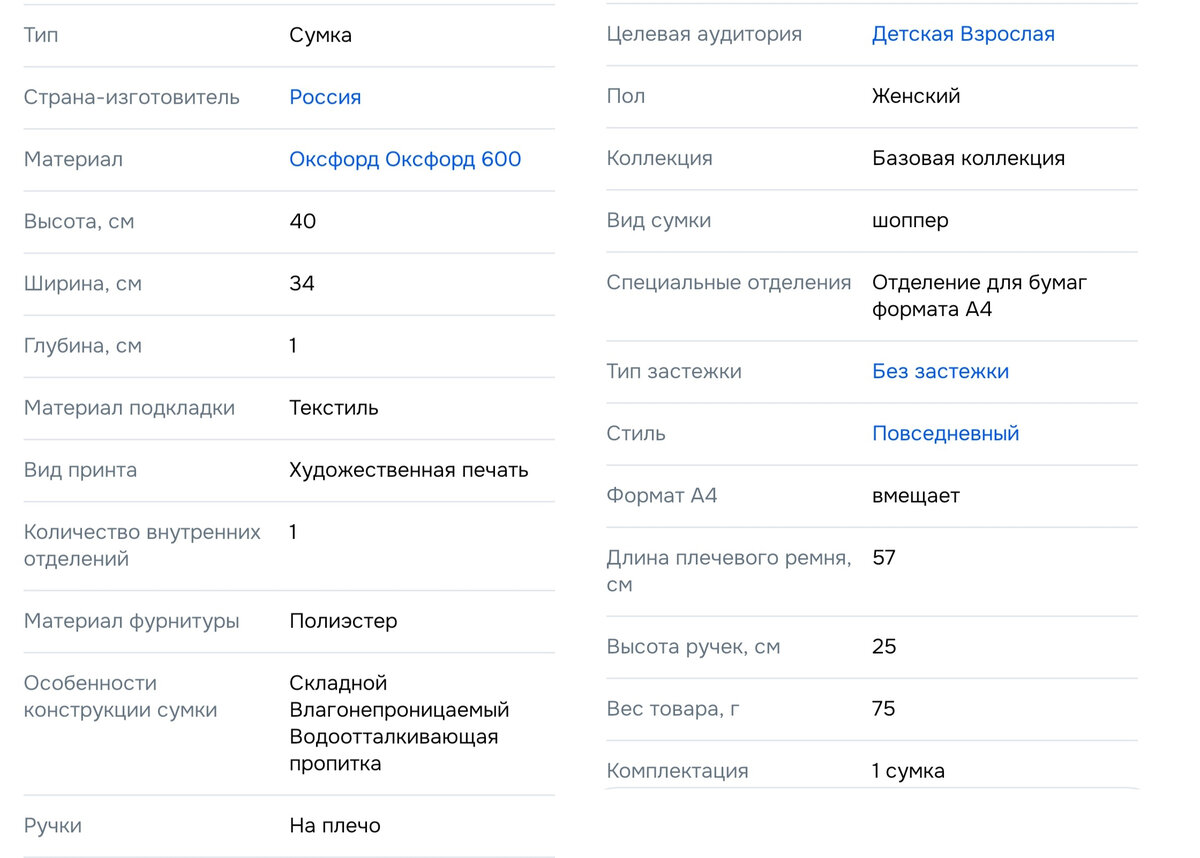 Размер 32*10*30 см, длина ручек 23 см