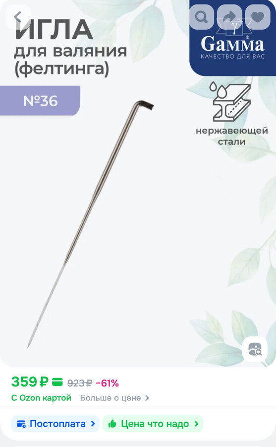 Иглы для валяния (фелтинга) 5 штук №36 толстые Gamma - новые - отдам за 300 р.