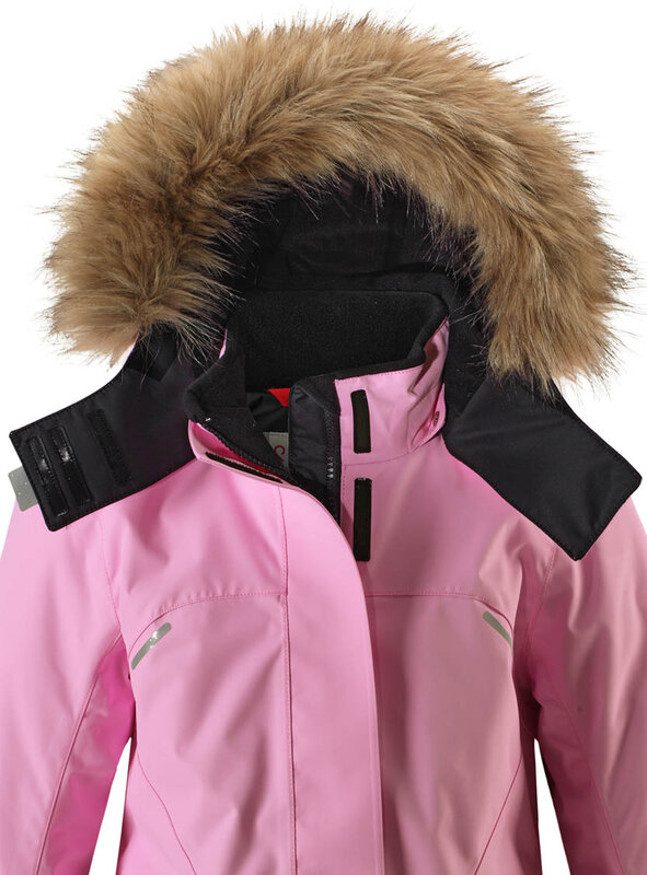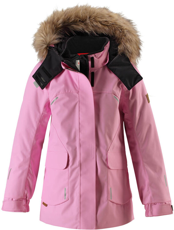 Парка Sisarus от Reima выполнена из гладкого текстиля. Все швы проклеены и водонепроницаемы. Водо- и ветронепроницаемый, «дышащий» и грязеотталкивающий материал. Крой для девочек. Гладкая подкладка из полиэстера. Безопасный отстегивающийся и регулируемый капюшон с отсоединяемой меховой каймой из искусственного меха. Регулируемые манжеты. Эластичный пояс сзади. Удлиненный подол сзади. Внутренний нагрудный карман. Два прорезных кармана. Cветоотражающие детали.