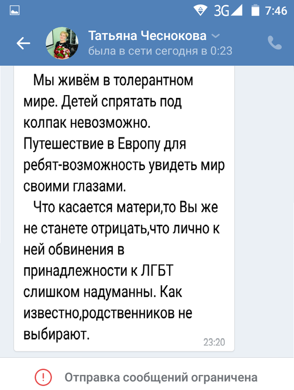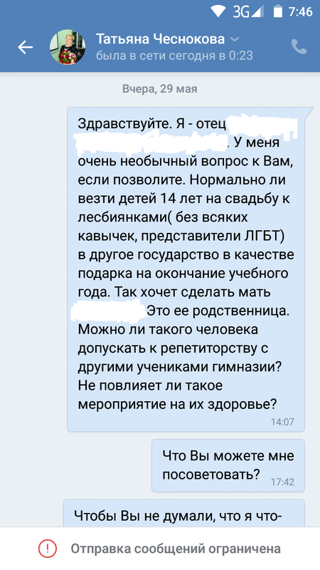 После этих сообщений я попал в черный список лично учителя и сообщества в ВК . Директор гимназии в личном разговоре поддержал учителя.