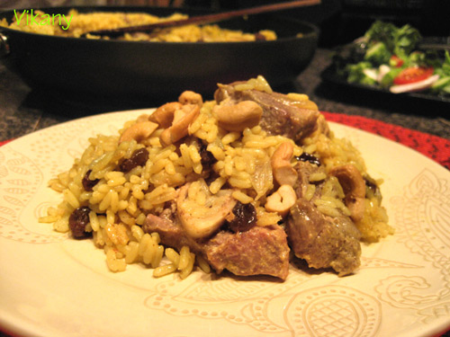 Biryani, biriani, or beriani это блюдо индийской кухни с рисом (обычно басмати), большим количеством разнообразных специй и мясом или рыбой, яйцами, овощами. Название происходит от персидского слова beryā , которое значит "жареный" or "обжаренный". Биряне очень вкусное и ароматное блюдо, но обычно очень трудоемкое, приготовить которое занимает пол-дня. Этот рецепт из книги 'Ужин в одной посуде'. Это более легкая и быстрая версия традиционного индийского блюда. Не пугайтесь - список специй очень длинный, но в блюде нет никаких необычных приправ.