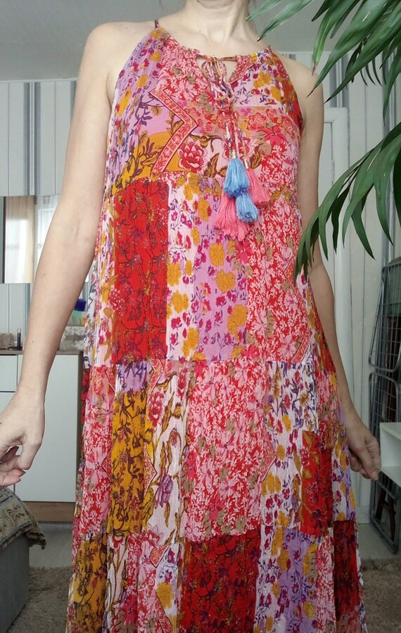 2.Сарафан дорогого бренда 2BRych, маркировка 8 (на наш 46, 46+), верх- натуральный шелк (кроме золотистой ткани), подклад (не просвечивает). Смотрится стильно и не обычно. Одевалось несколько раз на отдыхе (стало мало).