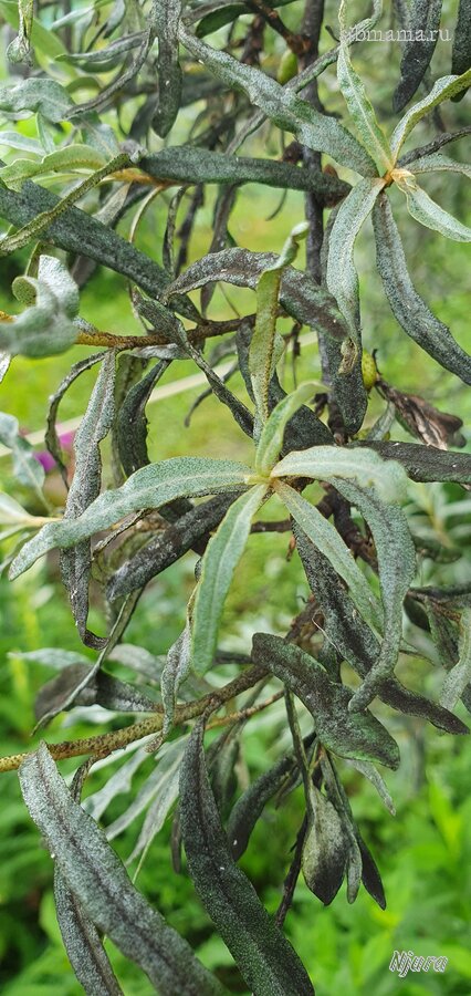На молодой облепихе на листьях появился чёрный налёт. Причём, не на всех ветках.