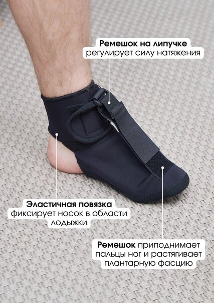 Комфортный при ношении - регулируемый ремешок увеличивает натяжение носка постепенно, чтобы стопа успела адаптироваться.