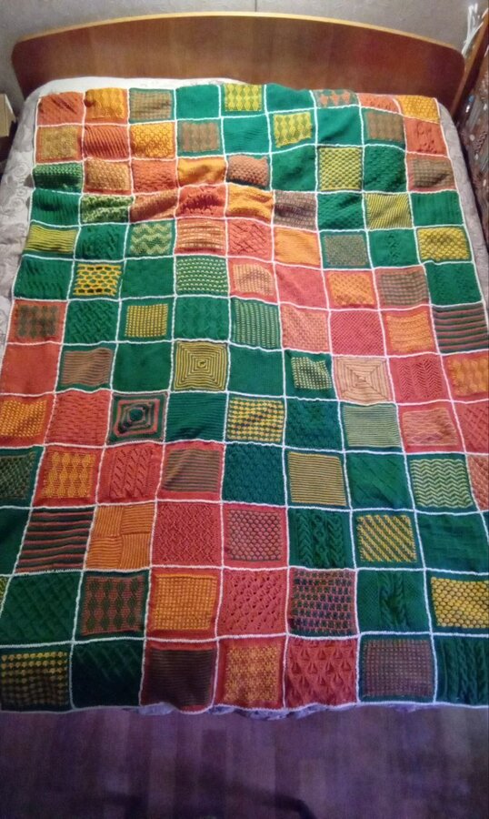 Доделала свой плед полностью! 150 на 200 см. 117 квадратов.