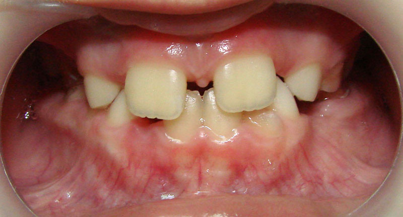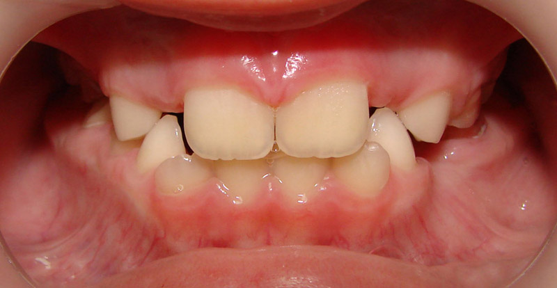 Начну с самого простого. Мальчик, 6 лет. Носил съемную плстинку 4 мес. В таком возрасте брекеты еще, как правило, не используют.