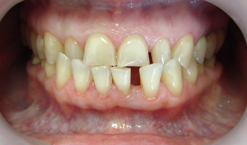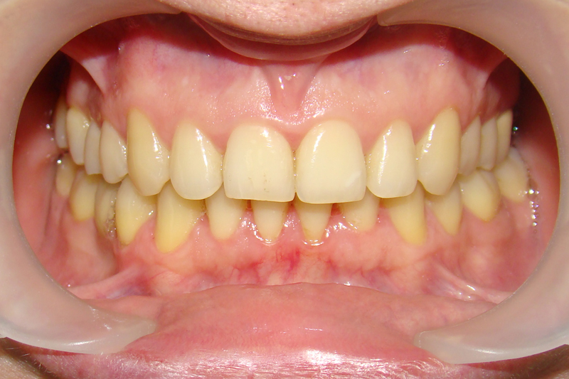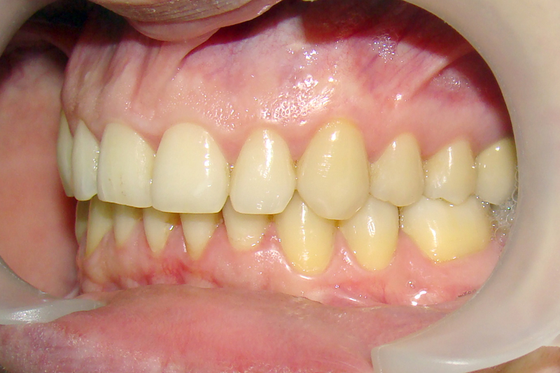 Теперь мужчина, лет 30ти. Очень интересный случай! Экспериментальный. Опробовали аппарат, который только появился. Для взрослого человека - это очень хороший результат. И что особенно радует - стабильный. Фотографии после лечения сделаны спустя два года.