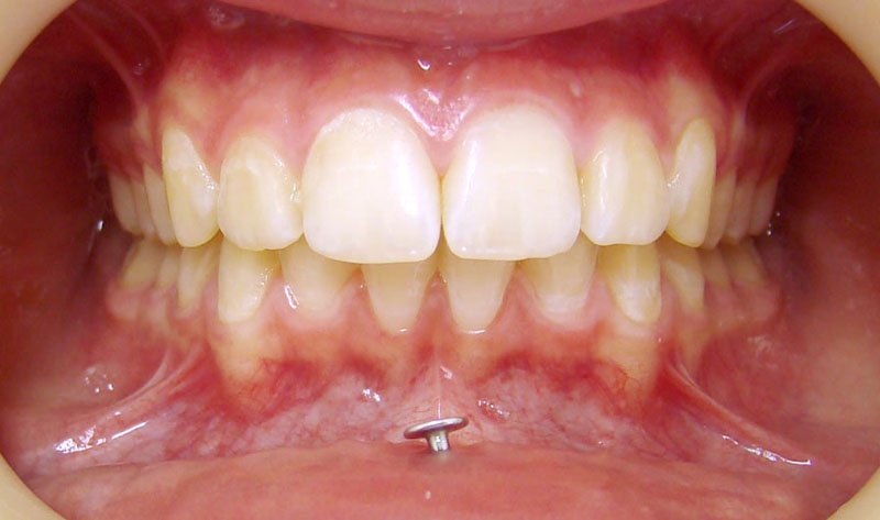 И еще одна девушка, с очень глубоким прикусом "до" и пирсингом "после"