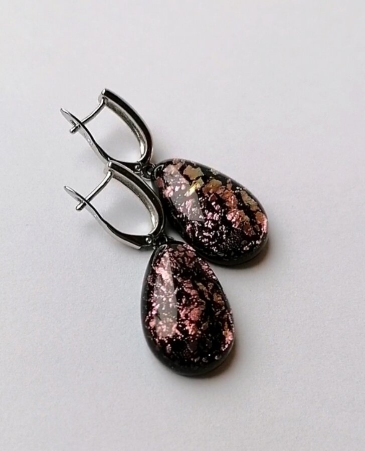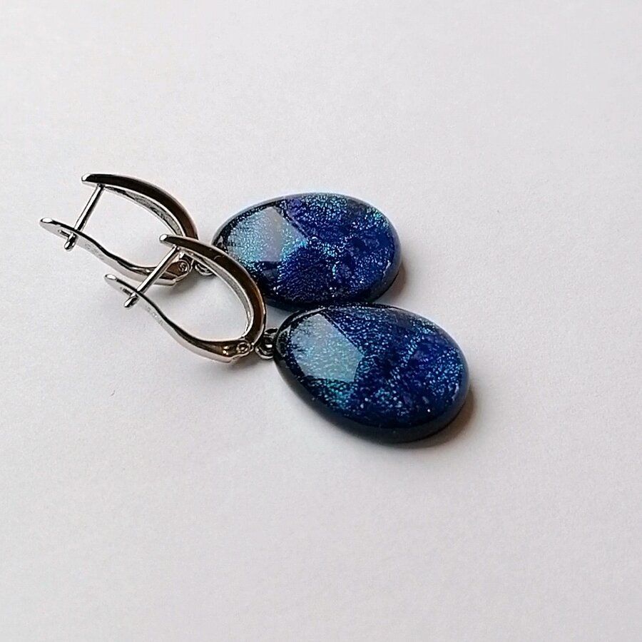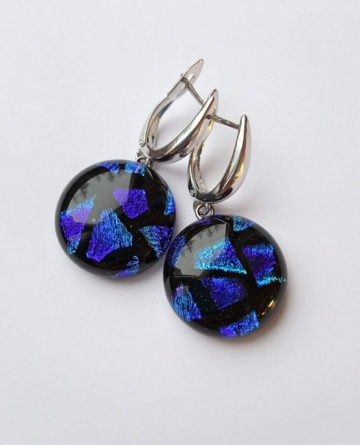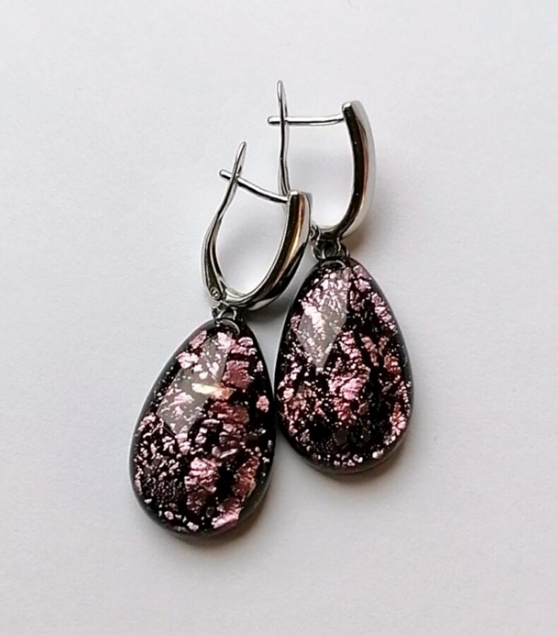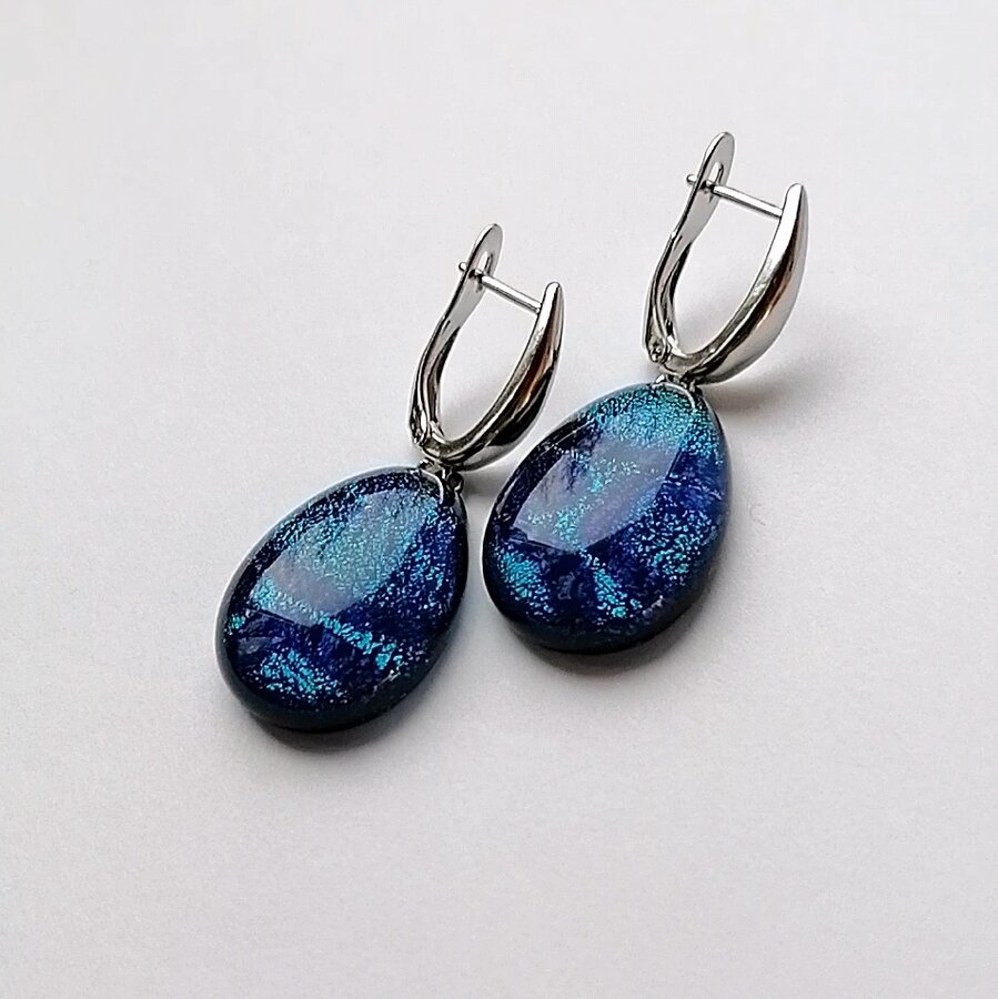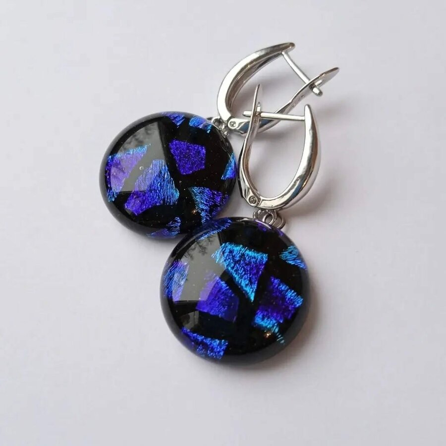 Серьги авторской работы. Выполнены из стекла с ручной обработкой и выплавлением в печи.