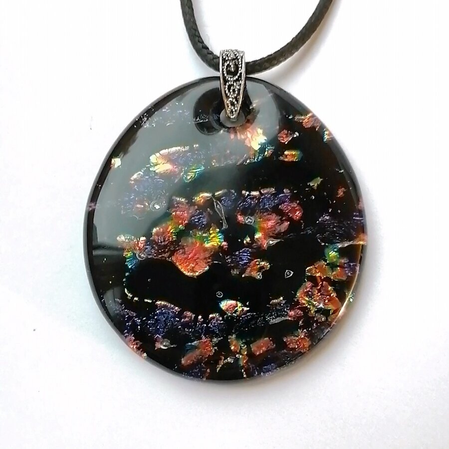 Кулончик. Выполнен из стекла. Методом различных плавлений на разных температурах в печи. Полностью ручная работа из сырых материалов.