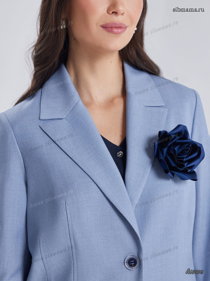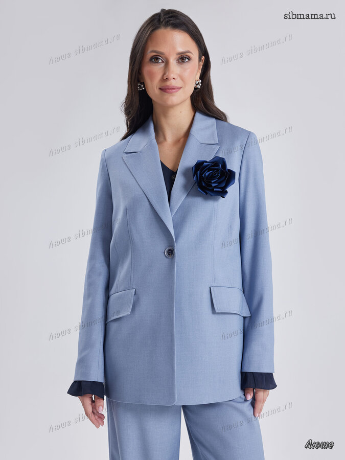 Стильный удлиненный женский жакет прямого кроя. Модель возможно использовать как легкое пальто и носить в более прохладную погоду.Многофункциональные наклонные прорезные карманы,закрытые клапанами имеют функцию дополнительного украшения,придавая изюминку и дополнительный акцент модели.Закреплен застежкой на петлю и пуговицу.Дополнительный слой утепления и комфорта обеспечивает присутствующая подкладка,продлевая тем самым срок службы модели.Горловина украшена бортами,легко впишется в деловой,повседневный а также торжественный образ.Приукрашен оригинальной объемной съемной брошью в качестве цветка,позволяющей выразить свой индивидуальный стиль и заявить о себе.Выглядит стильно и современно, а также сочетается с многими цветами и оттенками,что позволяет создавать множество образов, благодаря однотонному чарующему голубому цвету.Отличный вариант для всевозможных вариантов и внутреннего вдохновения.Скрыть
