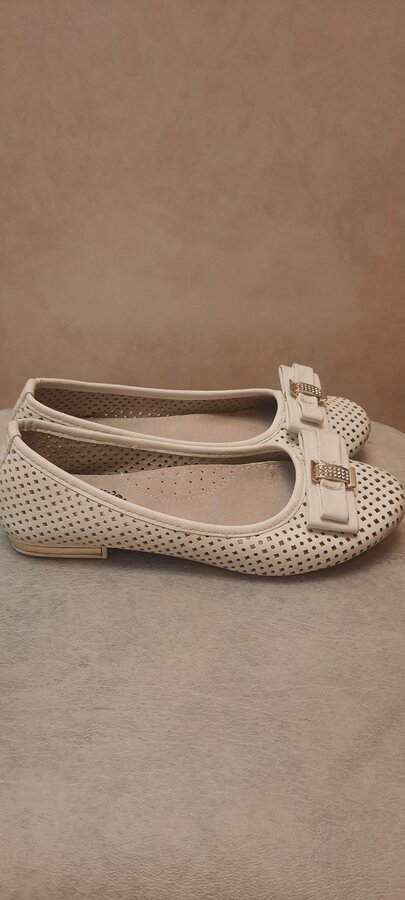 очень качественная обувь в отличном состоянии, надета буквально дважды флокированный верх, внутри прорезиненный материал, ножка не выскальзывает, но и не потеет, Смотрятся на ножке великолепно и "в пир и в мир".