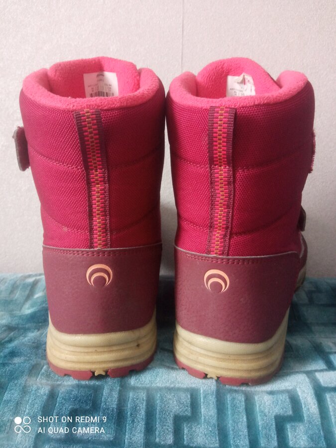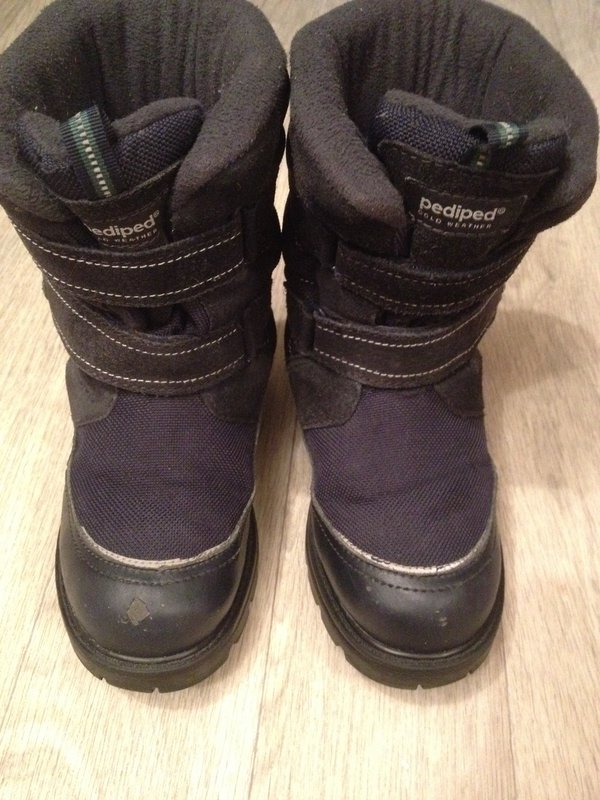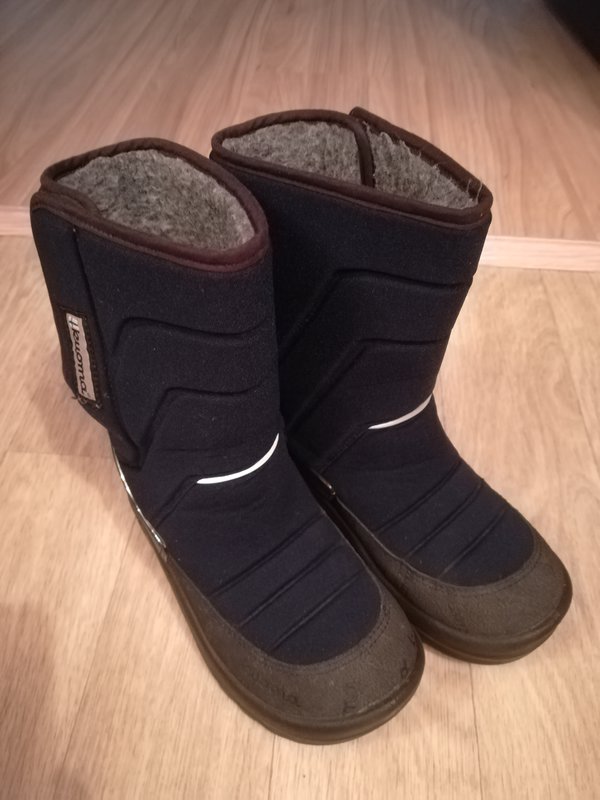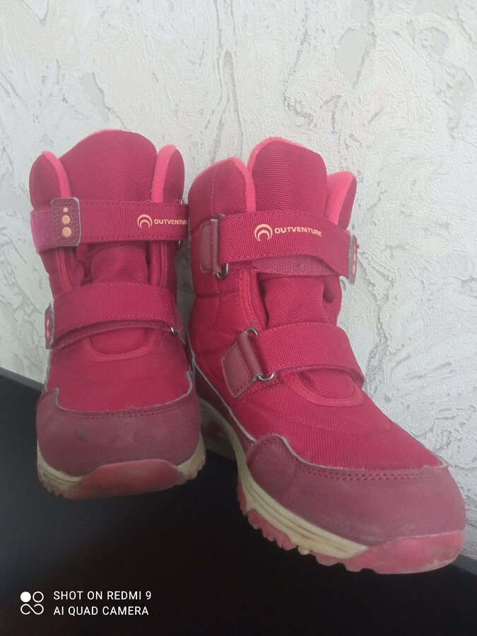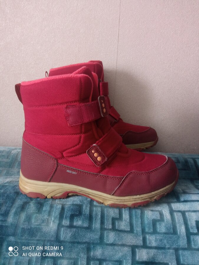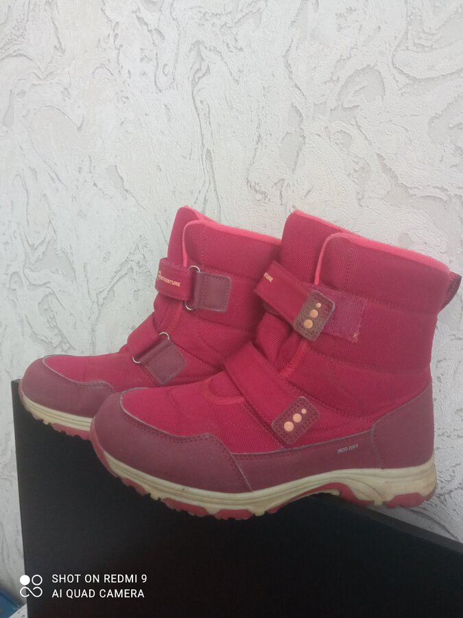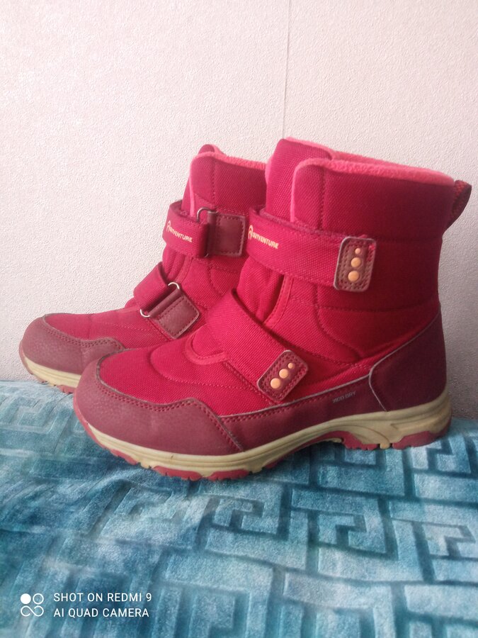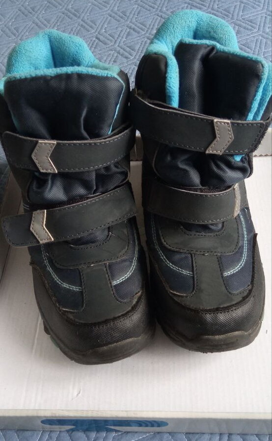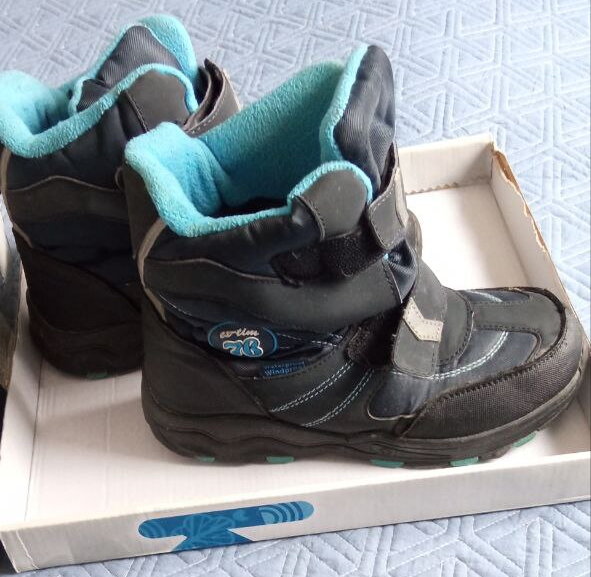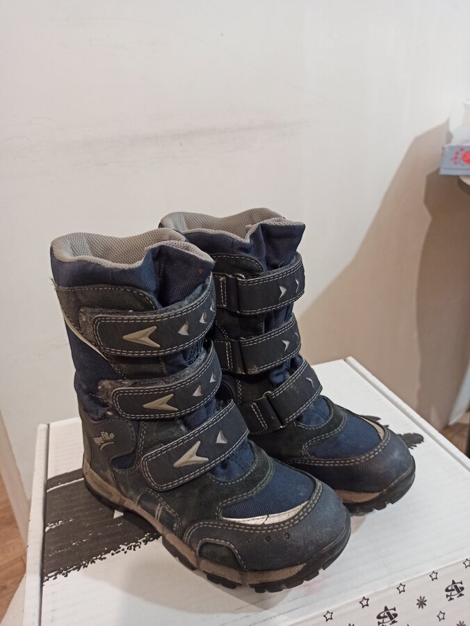 Теплые мембранные ботинки с защитой от воды и современным отведением влаги. Стелька из натуральной шерсти с слоем из перфорированной фольги. Ноги всегда теплые, но в помещении остаются сухими. Липучки очень крепкие. Ботиночки высокие - идеальные для лазанья по сугробам и зимних активностей. Ношены один сезон