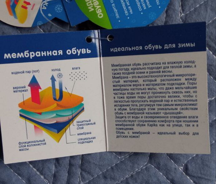 Специальная технология Killpor -TEX гарантирует водонепроницаемую и дышащую обувь. В такой обуви ножка ребенка не замёрзнет и не вспотеет.