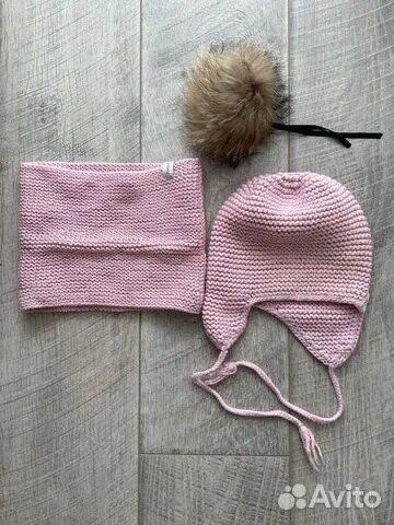 9. Комплект шапка+варежки на 12 мес. 100 акрил,внутри трикотаж. Новый 250 РУБ.!!!