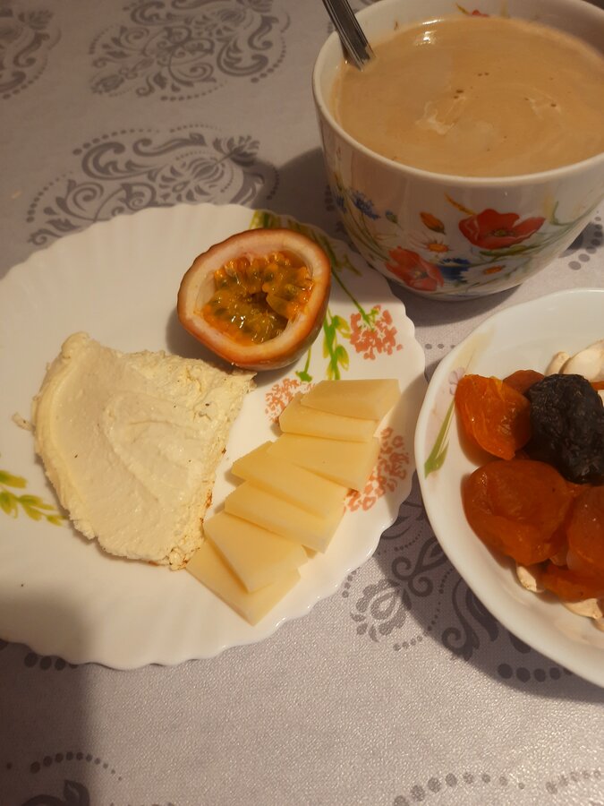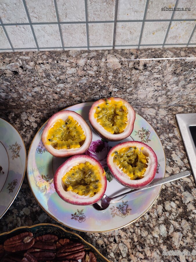 С такой жадностью ем. Видимо, лета сильно хочется. Надоела зима. А маракуйя прямо пахнет летом.