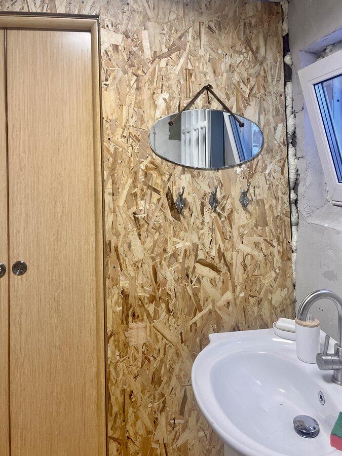 Увидела на фото окно на раковиной в санузле. Здорово же, умываться и в окно посматривать, особенно, если вид красивый)