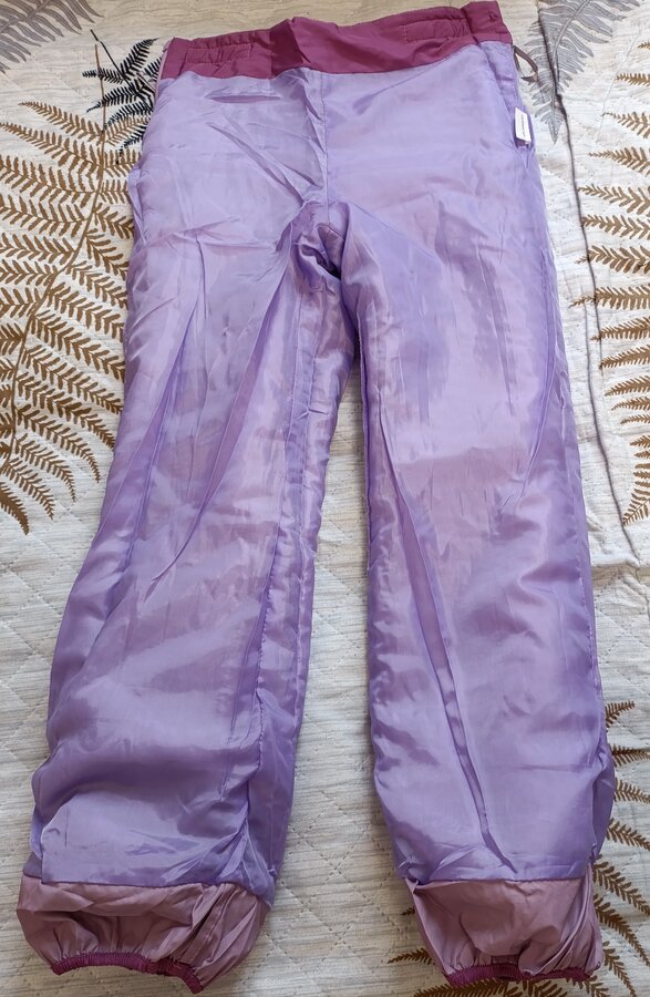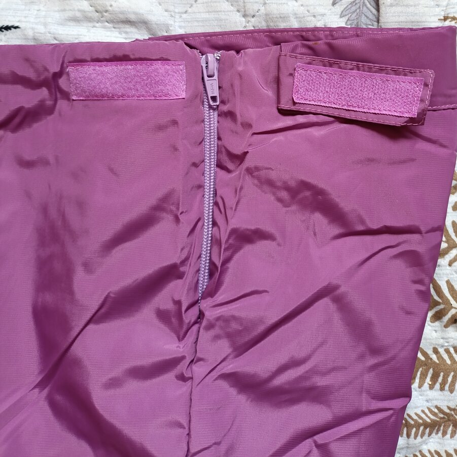 Штаны ветровочные для девочки на тонком синтепоне, р-р 134 ((шаг - 58 см). Цвет - пыльная роза. Оснащены светоотражающим элементом. Боковой замок, регулировка в районе пояса с помощью липучек. Внизу - внутренние резинки.
