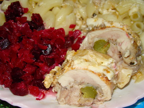 А мы вчера приготовили "куриные кармашки"с сыром и черносливом:
