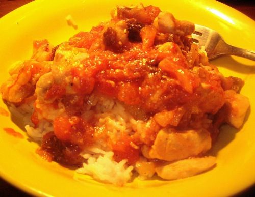 На гарнил варю рис, который потом смешиваю с карри и немного подрумяненным на сковороде кунжутом.