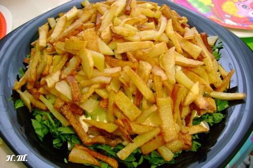 На мой взгляд, весь вкус заключается в наличии яблока и маслин. И еще - ни огурцов, ни капусты квашеной не надо. А у меня их как раз сроду нет - я заготовками не увлекаюсь. |