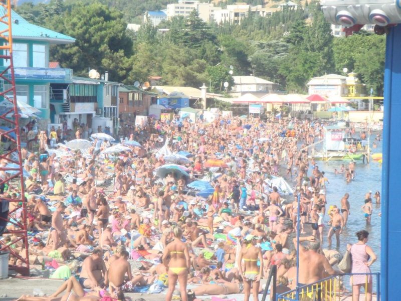 Посмотрите что бывает на бесплатных пляжах в разгар сезона. Это Алушта, городской пляж, август прошлый год.