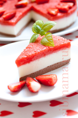 Очень хотелось чего-нибудь освежающего, легкого и вкусного. В холодильнике оставалось понемногу творога и сливочного сыра, молоко. Клубнику собрали накануне вечером. За основу взяла вот этот рецепт, оставалось только купить йогурт. Делается такой торт недолго и совсем нехлопотно, а что еще немаловажно – не нужно печь, ведь и так жарко дома.