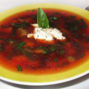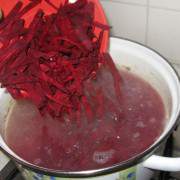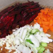 Все овощи помыть,почистить и порезать как на обычный борщ :картофель кубиками,морковь полукольцами,капусту нашинковать,лук кубиками,чеснок кружочками.