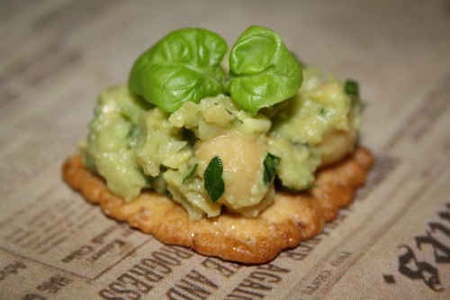 В салатник выложить авокадо (кубиками), вареные креветки и листья крупно порезаные. Полить заправкой. |