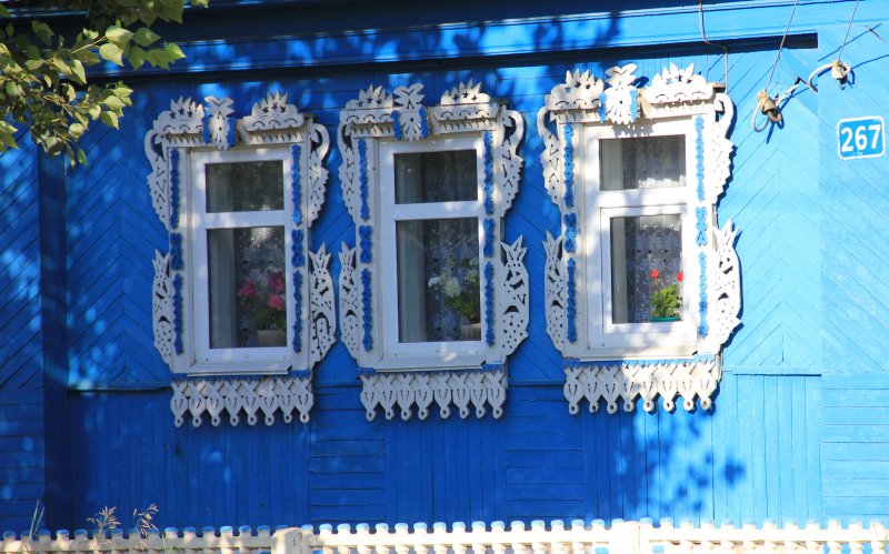 Сфотографировала из-за наличников - в Удмуртии они все (с богатой резьбой или совсем простенькие) обязательно сужаются в середине. Просто показалось интересно.