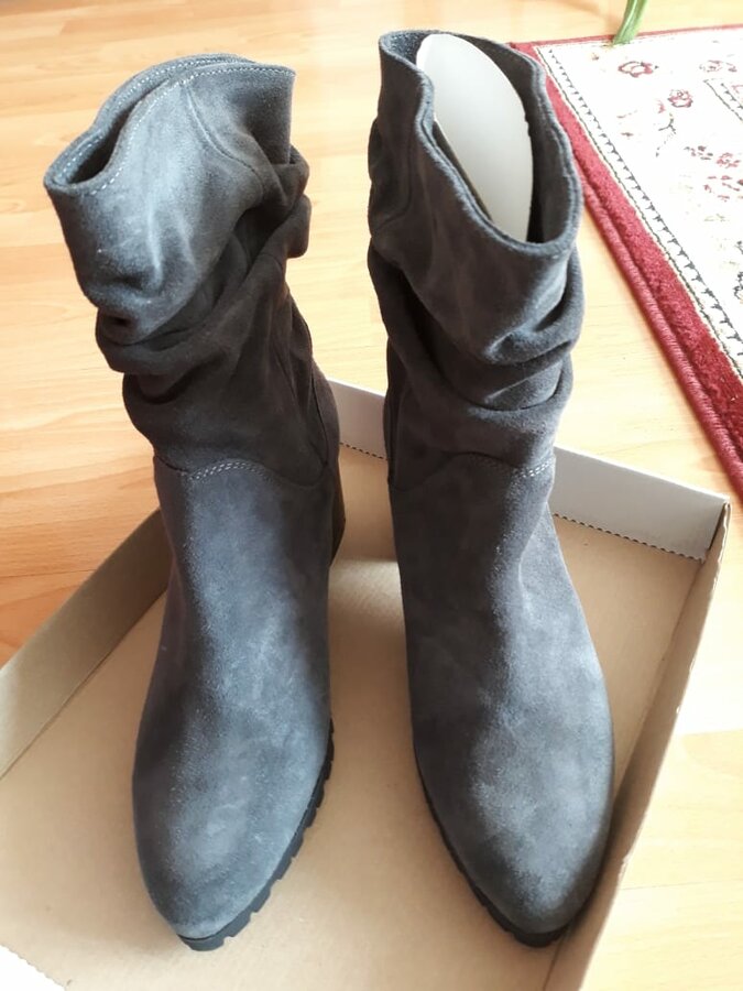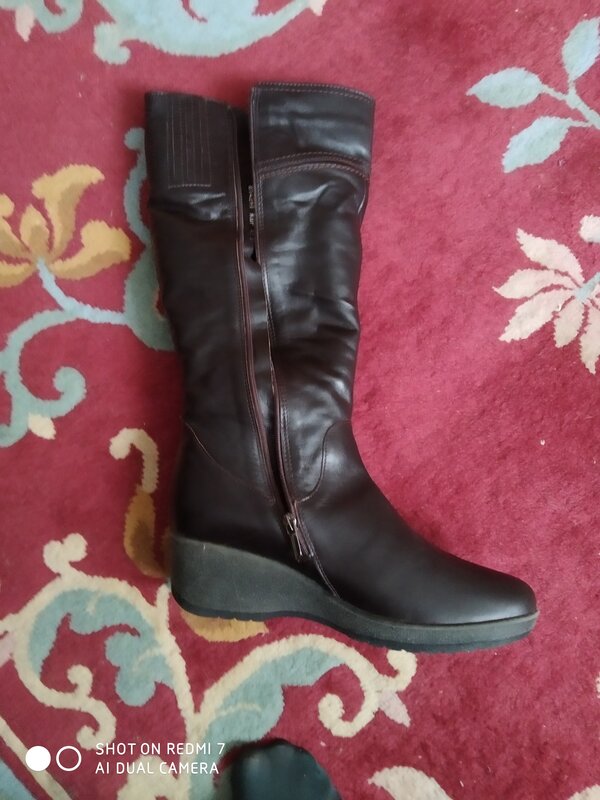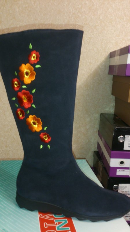 [spoiler]модель 394 .37 размер. большемерят немного на полную икру до 40 см. Замеры длина 45 самая высокая точка низкая 36+каблук 4,5 см, ширина в самом широком месте почти 20 . стельке не вынуть ширина подошвы 25 см.