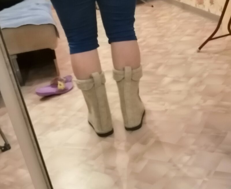 Захотела себе высокие...но не угадала с голяшкой, узковаты :aga-aga: . У меня обхват голяшки 39.5см.