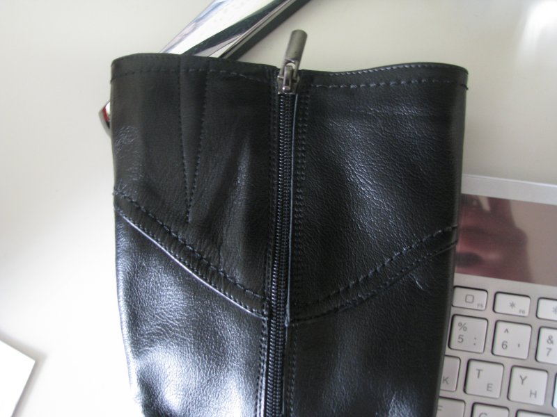 Молния вшита НЕ до конца. Заканчивается примерно на высоте 33-34 (измеряла от границы каблука и пятки)