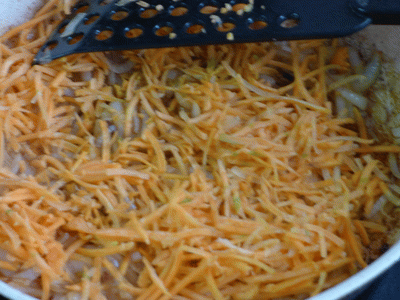 Потом морковку туда. Минут на 10, чтоб обмякла. Нагрев еще уменьшила.