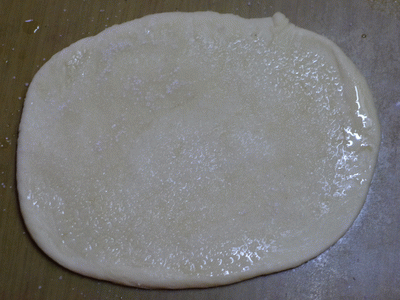 Общее для всех: раскатываем лепешку, смазываем маслом и посыпаем сахаром.