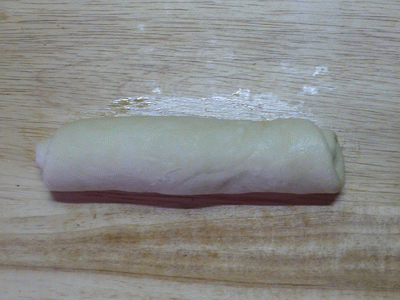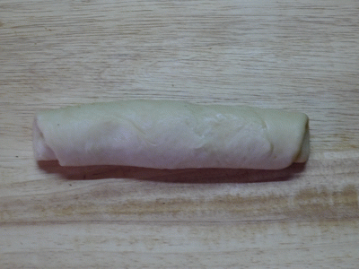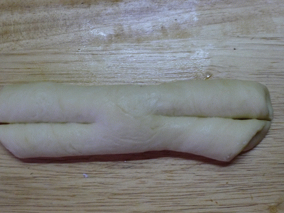 Скатать тесто в рулет по длинной стороне.