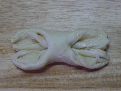 То же самое, что с бантиком, только делаем не один разрез, а четыре. И разворачиваем.