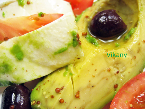 Салат с моцареллой, авокадо и соусом с горчичными семенами