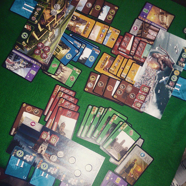 Для меня лично важно, что на полный цикл из трёх эпох уходит не больше 30 минут при игре втроем, вчетвером чуть больше. Красивое оформление, основанное на исторических моментах. Качественное исполнение. Продуманные правила.