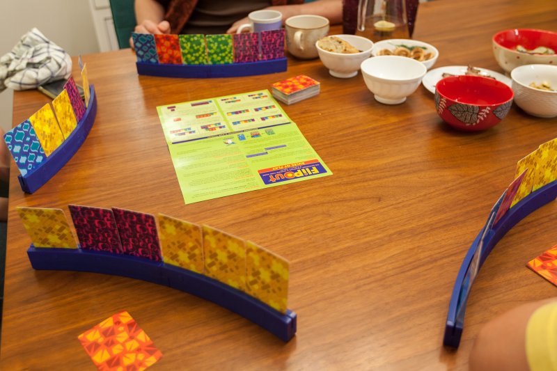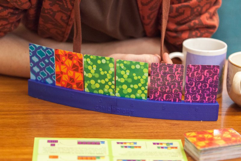 Каждуму выдается вот такая скоба, куда он ставит 6 карт. Карты двусторонние, и когда ты ставишь себе. ты не видишь, какого цвета они с внешней стороны, обращенной к другим игрокам.