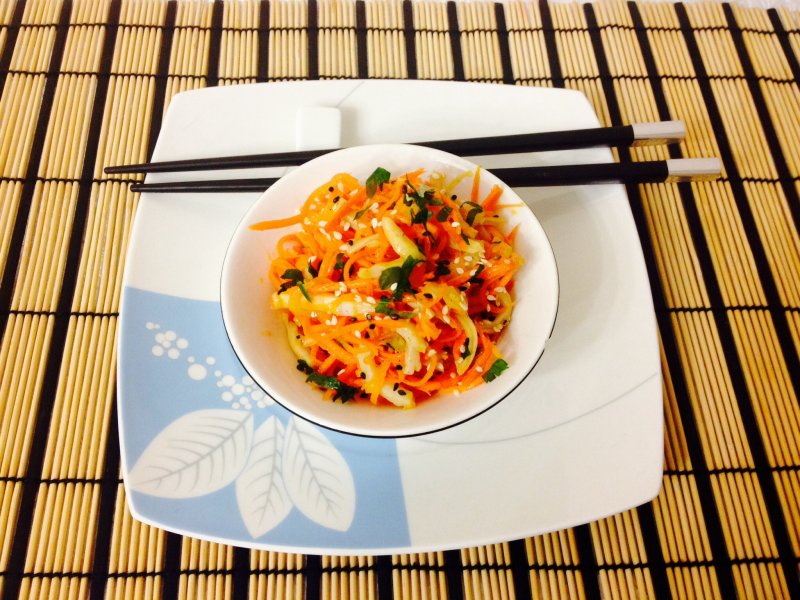 Добавляем сахар,соевый соус, уксус и тщательно перемешиваем. Даем настоятся часа 2 и наслаждаемся.