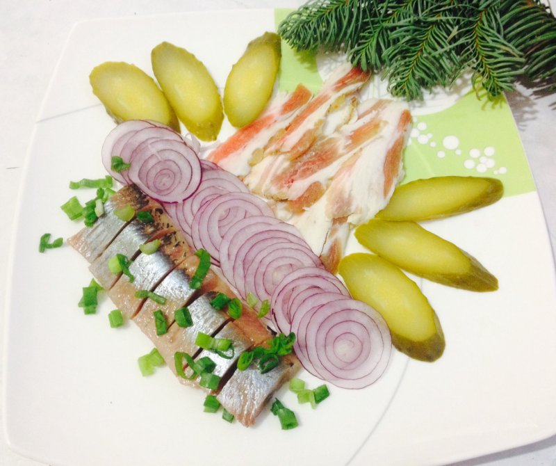 А что за ломтики рядом с веточкой? Сало?