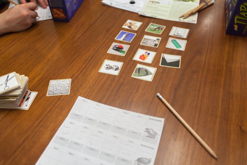 игра на ассоциации, как Диксит. Только надо составлять пары из картинок, соответственно, так же как в диксите, чтоб угадал кто-то, но не угадали все. Муж мой комментирует, что после игры листочки с записями надо отправлять психоаналитику для диагноза :)